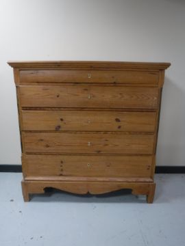 A late nineteenth century continental pine five drawer chest