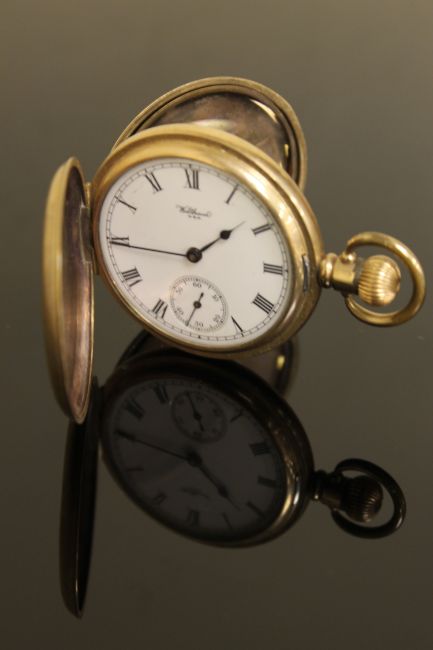 A gold plated Waltham Traveler full hunter pocket watch