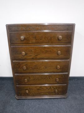 An oak five drawer chest