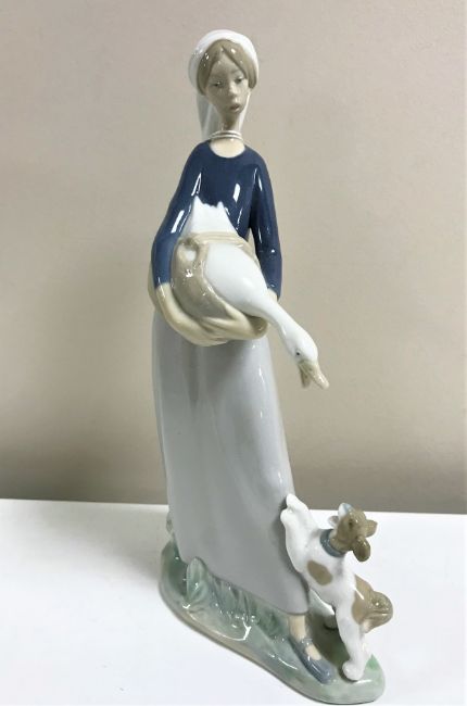 A Lladro figurine : Girl with Goose and Dog, 4866, height 27 cm, boxed.