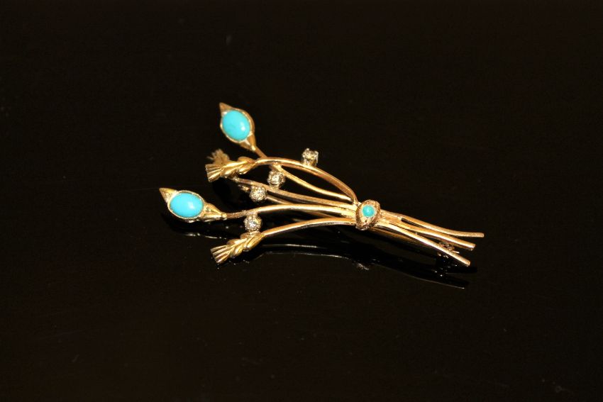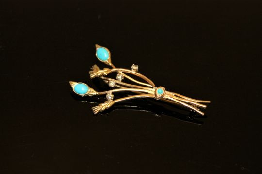 An 18ct gold diamond and turquoise floral spray brooch, 8.5g.