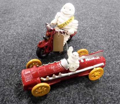 A cast iron Michelin racer and motorcycle