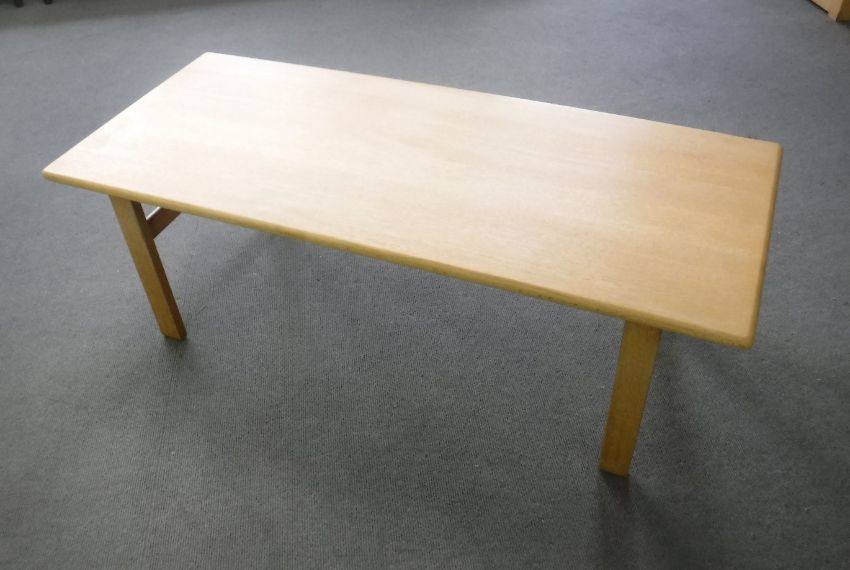 A contemporary light oak coffee table