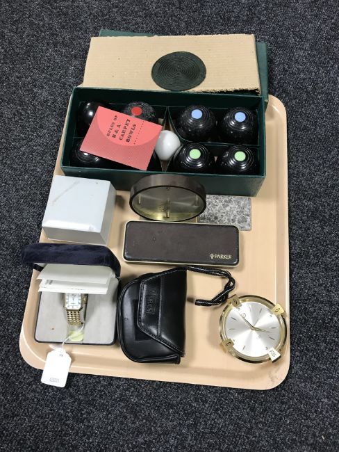 All items generally appear to be in good order. Desk clocks working. Hermes quartz wristwatch not currently running.