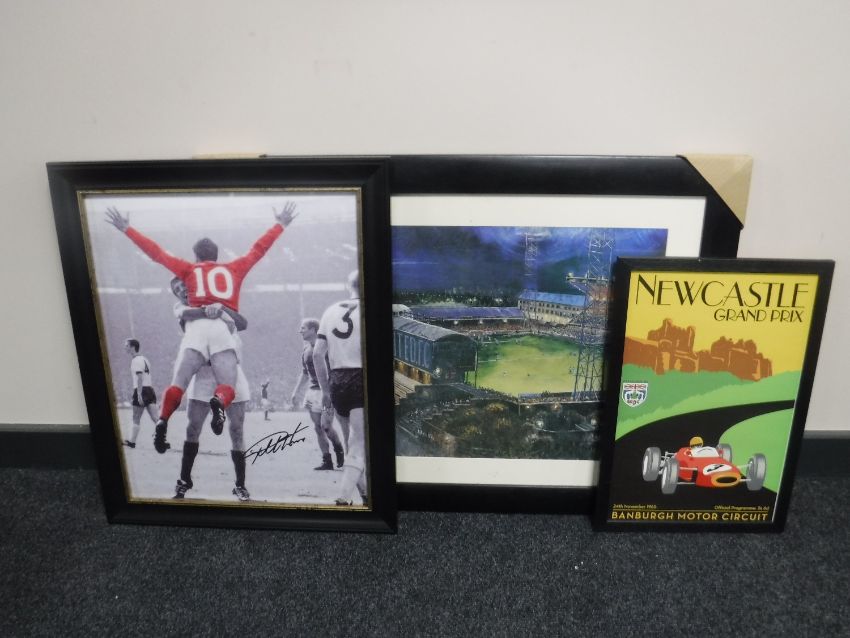 A signed Jeff Hurst 1966 picture, a Dallas Taylor print and a Newcastle reproduction poster