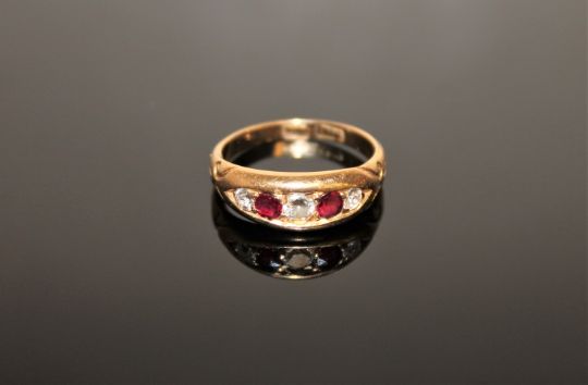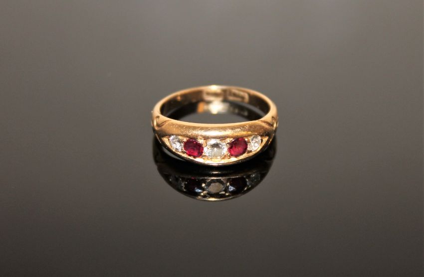An antique 18ct gold ruby and diamond ring, 4.5g, size M.