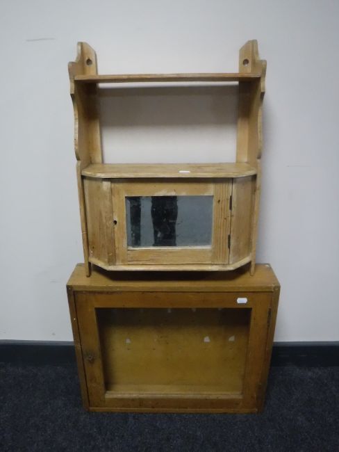 A mid 20th century key cabinet and an antique pine wall shelf