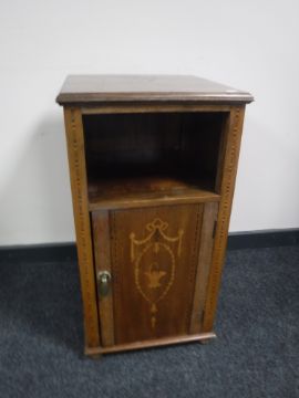 A Victorian inlaid mahogany pot cupboard