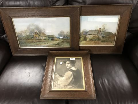 Two Edwardian oak framed Sylvester Stanard framed prints and a portrait study (3)