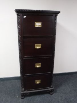 A reproduction mahogany four drawer filing cabinet on claw and ball feet
