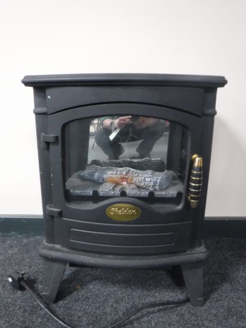 A Sheldam electric heater in the form of a stove