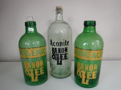 Three glass chemist's bottles