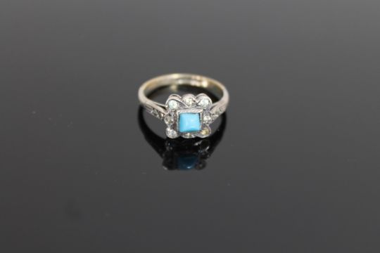 An early twentieth century silver dress ring set with a turquoise stone
