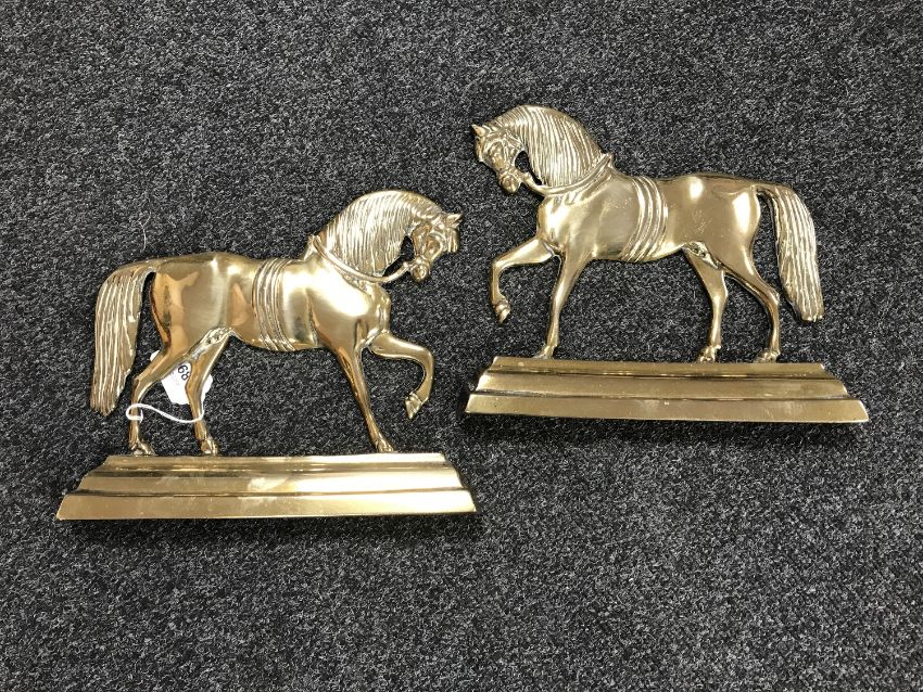 Two brass figures of horses