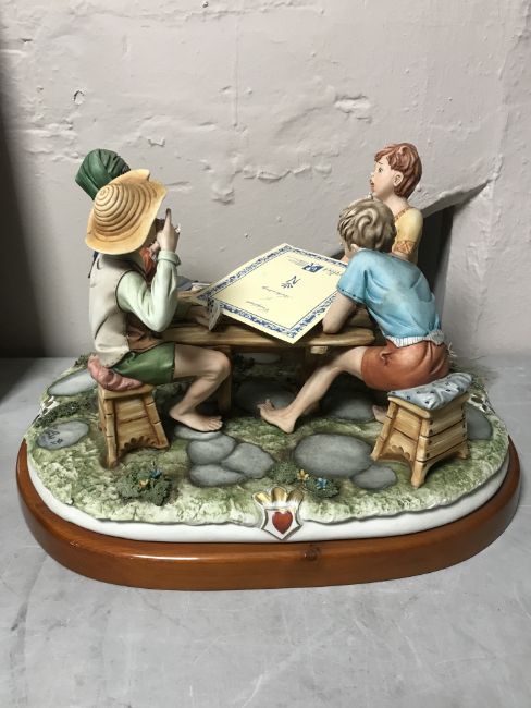 Cortesi for Capodimonte - The Cheats, on mahogany plinth, 47.5 cm long, with certificate