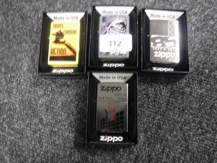 Four boxed Zippo lighters