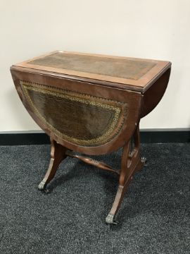 A set of framed Player's cigarette cards - vintage motor cars, three watercolours framed as one, a gilt framed portrait signed Lisa Barker and a drop leaf coffee table