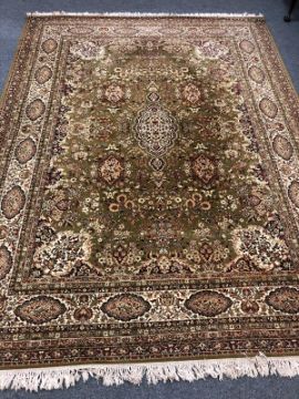 A good quality machine made carpet of Persian Isfahan design, on green ground, 376cm by 274cm