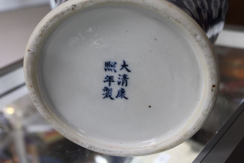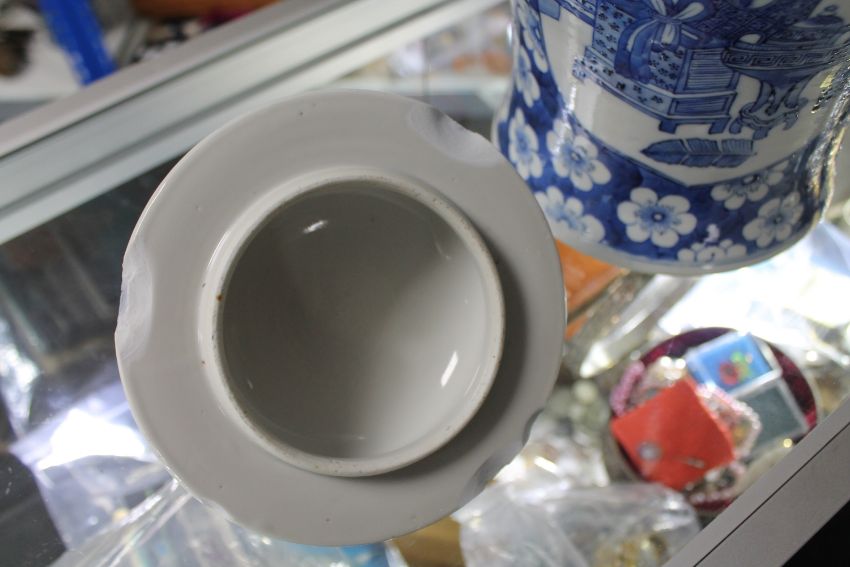 An antique Chinese blue and white lidded urn (a/f)