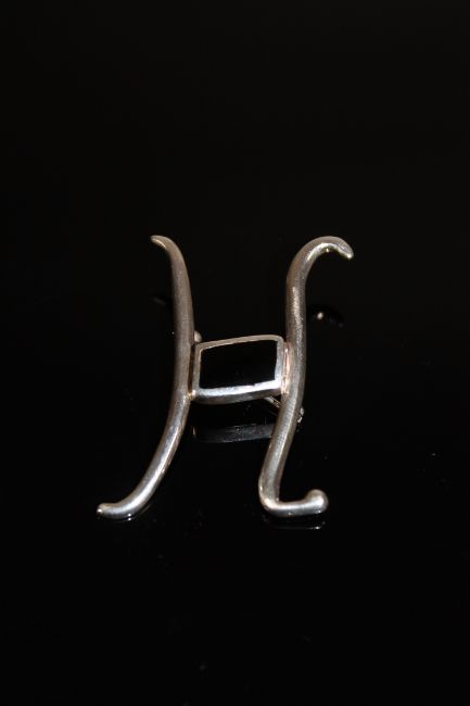 A silver and black onyx 'H' brooch