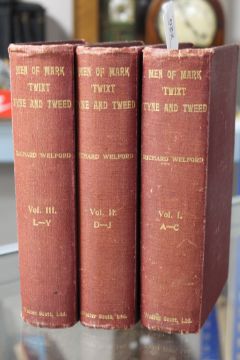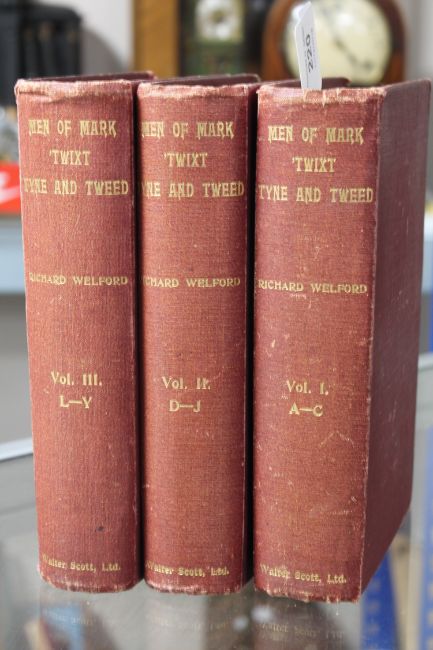Richard Welford, Men of Mark Twixt Tyne and Tweed, volumes I-III, published 1895, in red cloth covers (3)