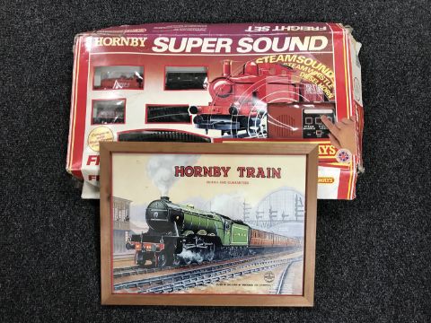 A Hornby Super Sound electric train set together with a framed print, Hornby Trains