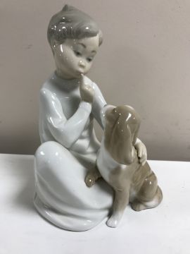 A Lladro figurine : Boy with Dog, model 4522, height 19 cm, boxed.