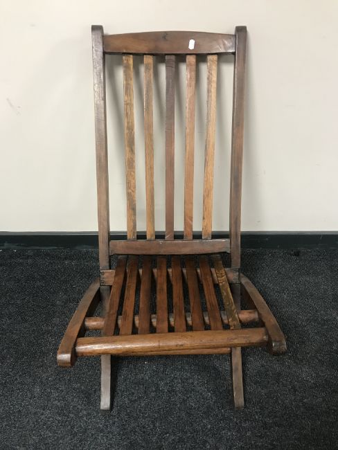 A folding steamer style chair