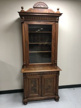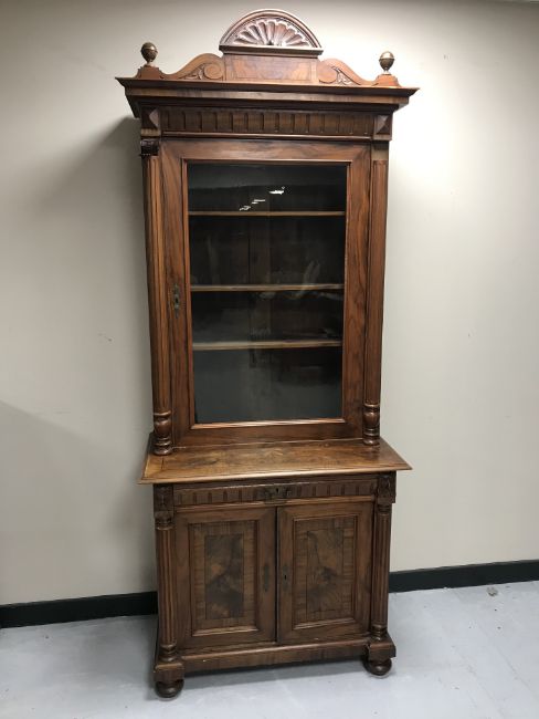 A 19th century walnut bookcase fitted a drawer with cupboard below