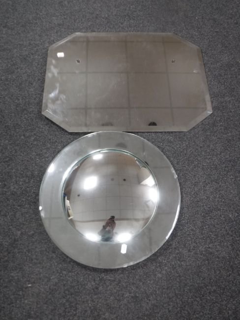 An early twentieth century frameless mirror together with a convex mirror