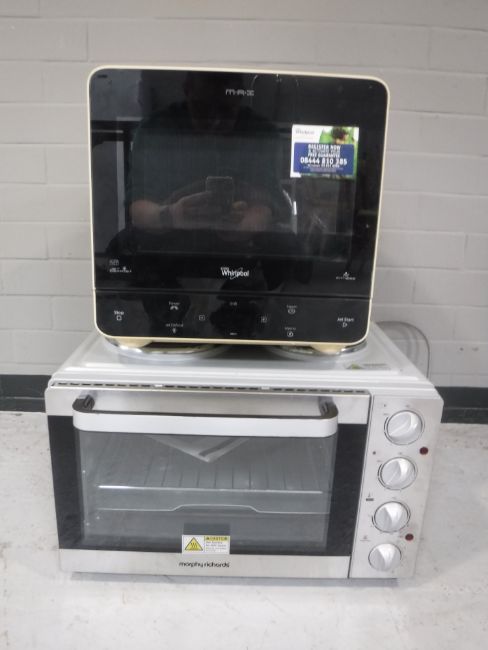A Whirlpool Max jet fitness oven together with a Morphy Richards mini oven