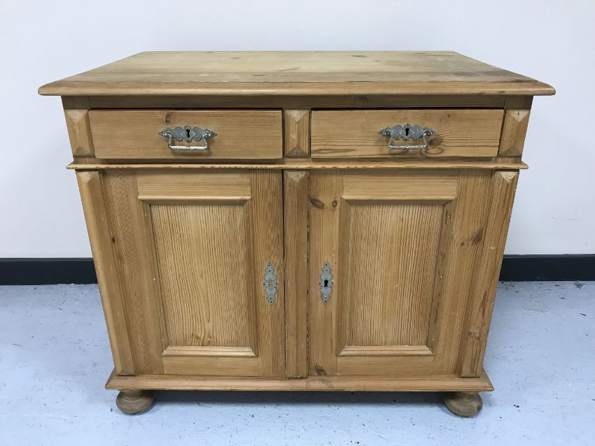 A 19th century pine side cabinet fitted two drawers