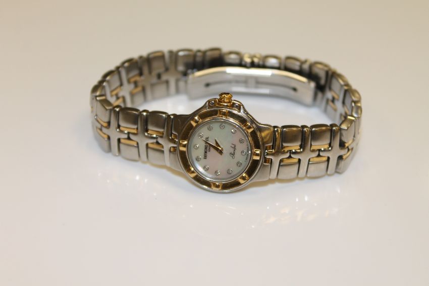 A Raymond Weil Parsifal lady's stainless steel quartz wristwatch, with mother of pearl and diamond set dial, width 24mm