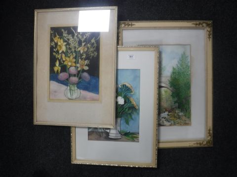 Three framed F. Forster watercolours - Hynam Bridge and two still lifes