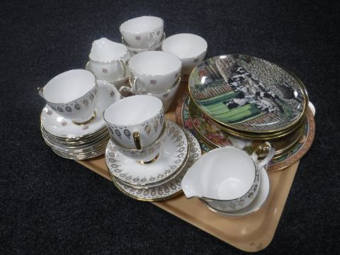 A tray of collector's plates, part Regency & Queen Anne tea service, Coalport Queen Elizabeth commemorative plate