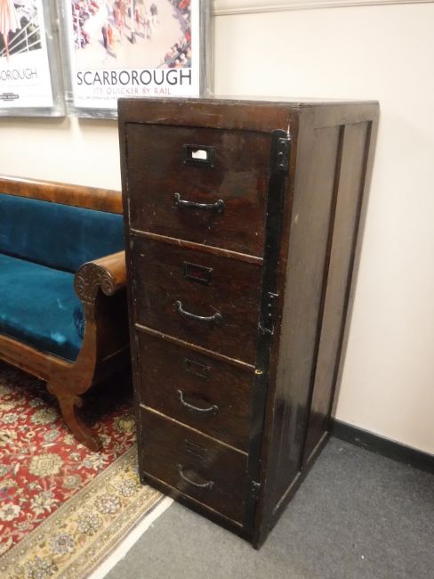 An early twentieth century oak filing cabinet with locking mechanism, width 50 cm.