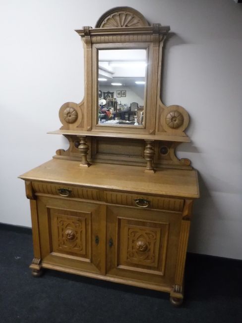 An early 20th century oak mirror back sideboard