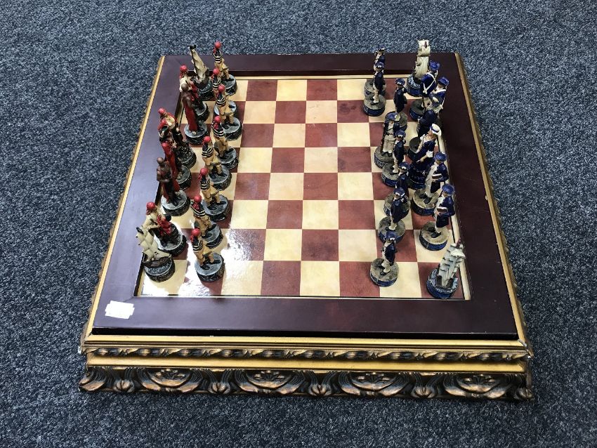The set is complete. The board is 52cm by 52cm. The kings are 8cm high.