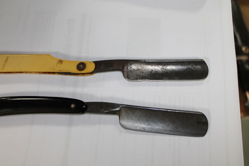A silver handled magnifying glass, two vintage straight razors, soldier's notebook, silver eight day pocket watch, silver wristwatch, whistles, pen knife etc