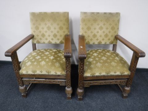 Six carved oak dining chairs