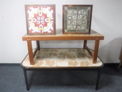 Two large Danish tiled top coffee tables together with two tile topped lamp tables
