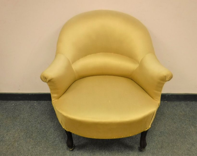 A Victorian lady's chair upholstered in golden fabric, width 76 cm. * By repute from The Ritz Hotel in Paris.