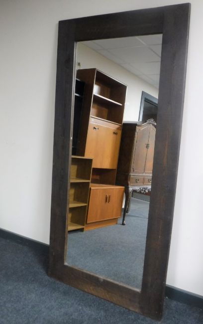 A contemporary stained pine framed hall mirror together with a contemporary brown rug