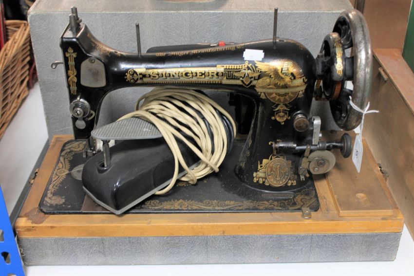 A cased mid 20th century Singer sewing machine