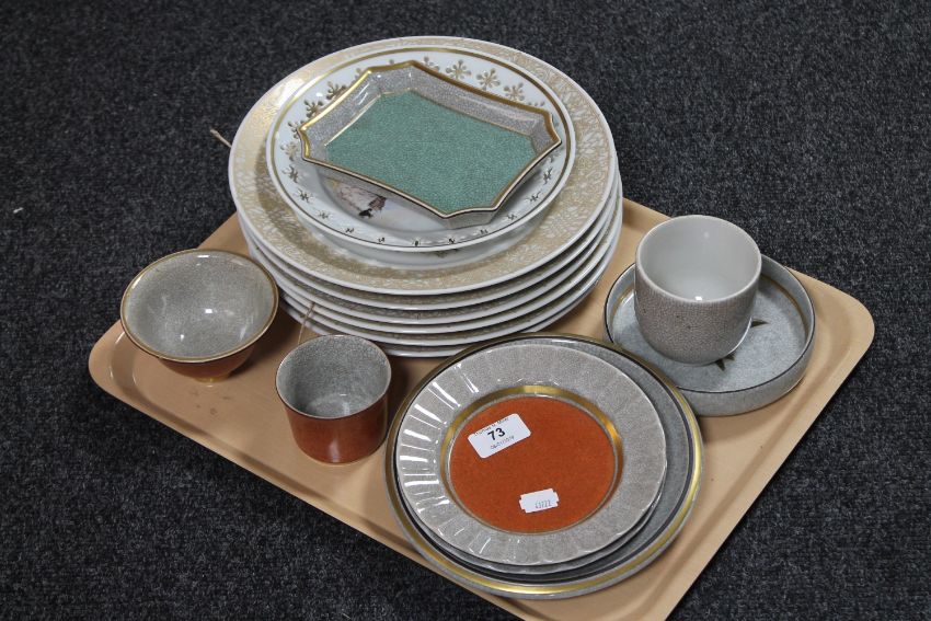 A tray of a set of six Royal Copenhagen Portraits of Old Copenhagen collector's plates together with a Bing & Grondahl collector's plate and eight other pieces of Royal Copenhagen china