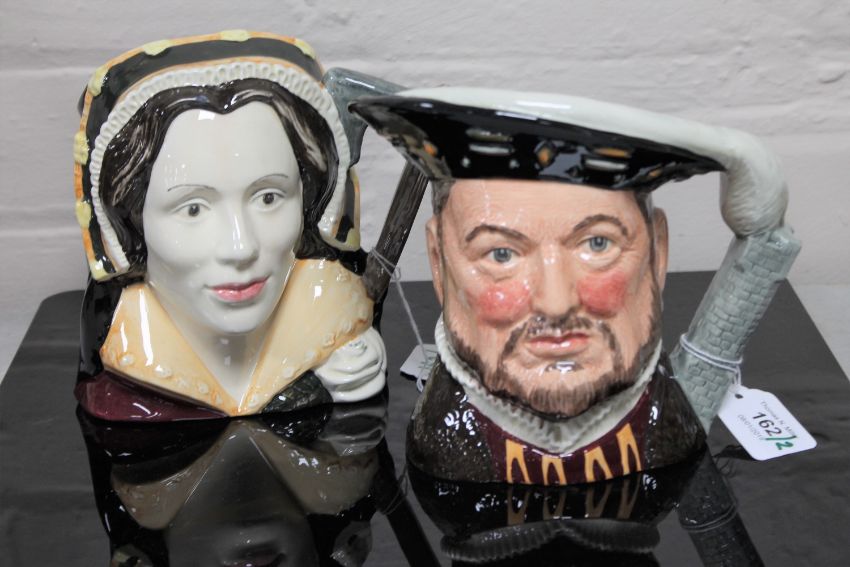 Two Royal Doulton character jugs : Henry VIII, D 6642, height 17 cm, and Catherine Howard, D 6645, height 18 cm. (2)