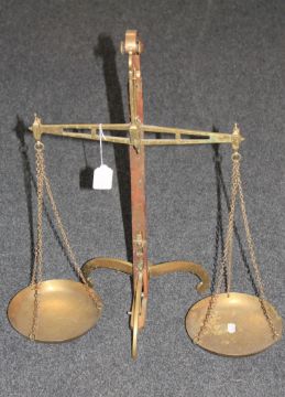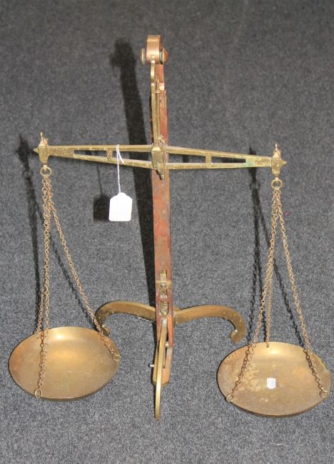 A set of brass W & T Avery pan balance scales