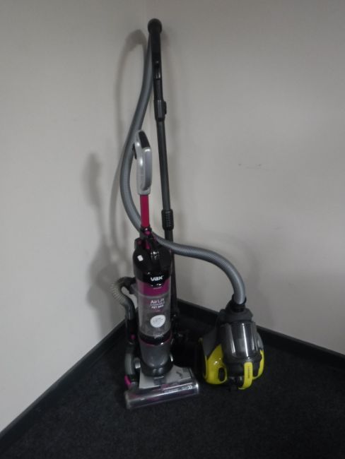 A box containing Vax Air Lift Pet Max upright vacuum together with a Samsung cylinder vacuum