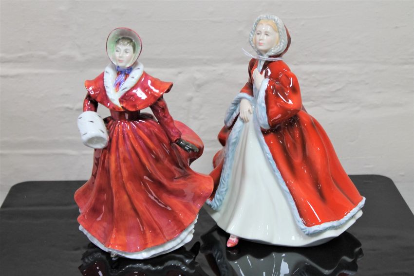 Two Royal Doulton china figurines : The Skater, HN 3439, height 20 cm, together with Rachel, HN 2936, height 21 cm. (2)