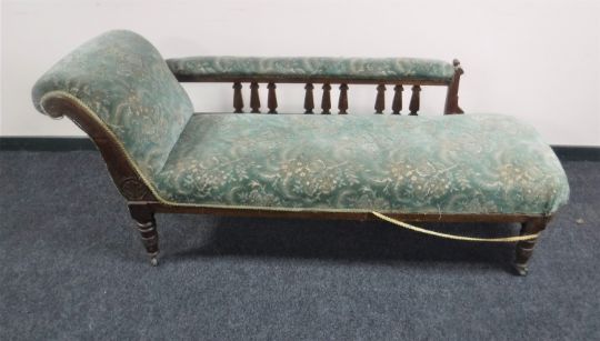 A Victorian mahogany chaise longue upholstered in green floral fabric
